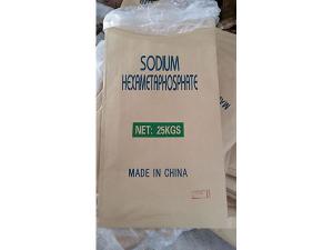 Se usa sobre todo como ablandador durante el procesamiento del agua de refrigeración en centrales eléctricas, máquinas, calderas y en fábricas de fertilizantes, así como aditivo detergente en la industria textil, el teñido y el blanqueamiento. Igualmente, se aplica como agente para pruebas de corrosión, agente de endurecimiento del cemento, agente de purificación de la estreptomicina y, en la industria alimentaria se recomienda como conservante y estabilizador. El SHMP también se emplea para proteger a los tubos de perforación contra la oxidación y el ajuste de viscosidad del lodo en la industria de extracción de petróleo. Otras aplicaciones incluyen el curtido, la fabricación de papel y películas de color, el análisis de suelos, la radiación, y la química analítica.